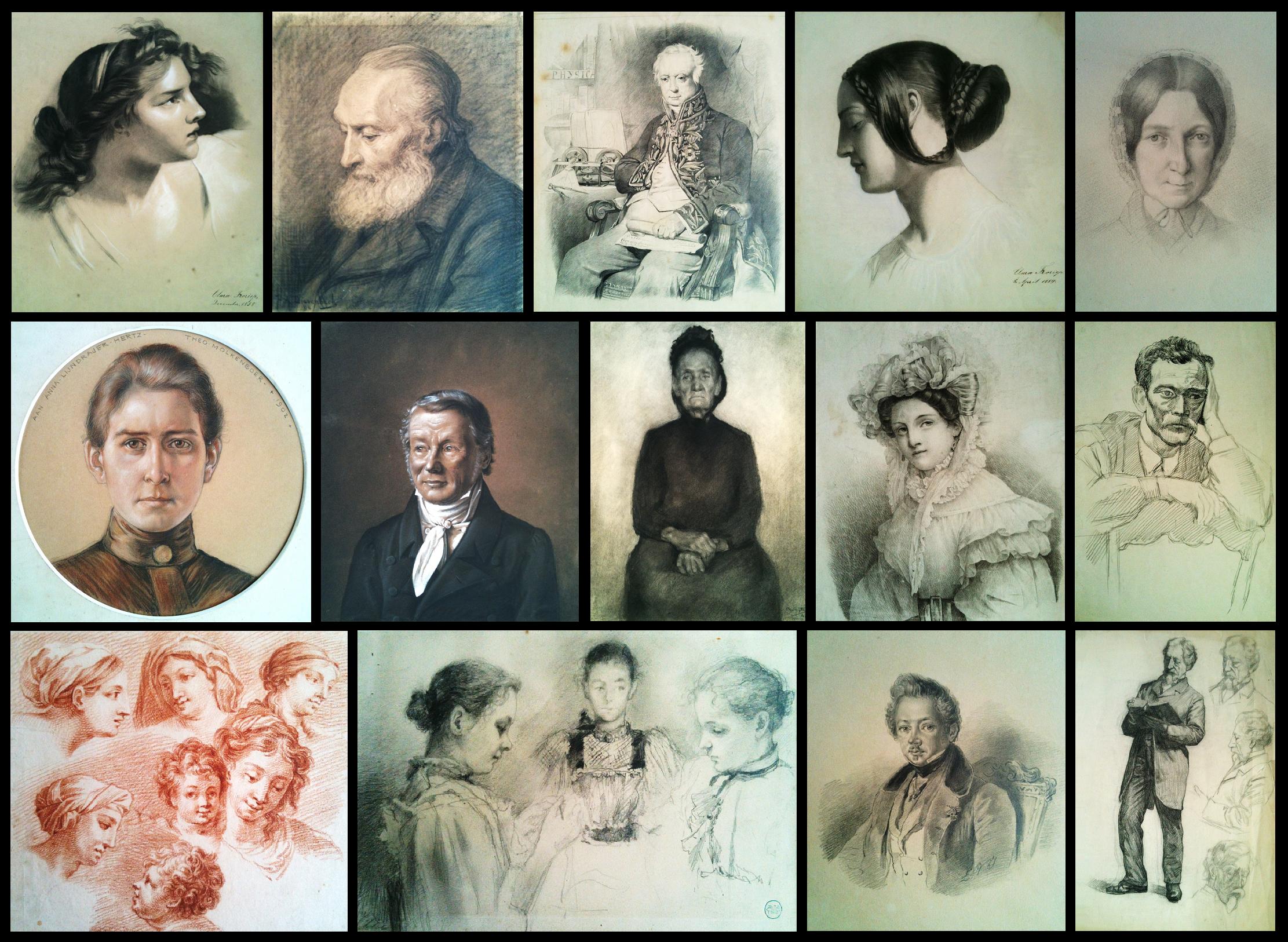 Binnen de collectie tekeningen en schilderijen bevindt zich een grote hoeveelheid hoofden, gezichten en portretten, uit diverse periodes, zowel anoniem als van bekende en onbekende kunstenaars. De technieken variëren van eenvoudige schetsen tot zeer gedetailleerde aquarel-, tempera-, pastel- acryl- en olieverfportretten.