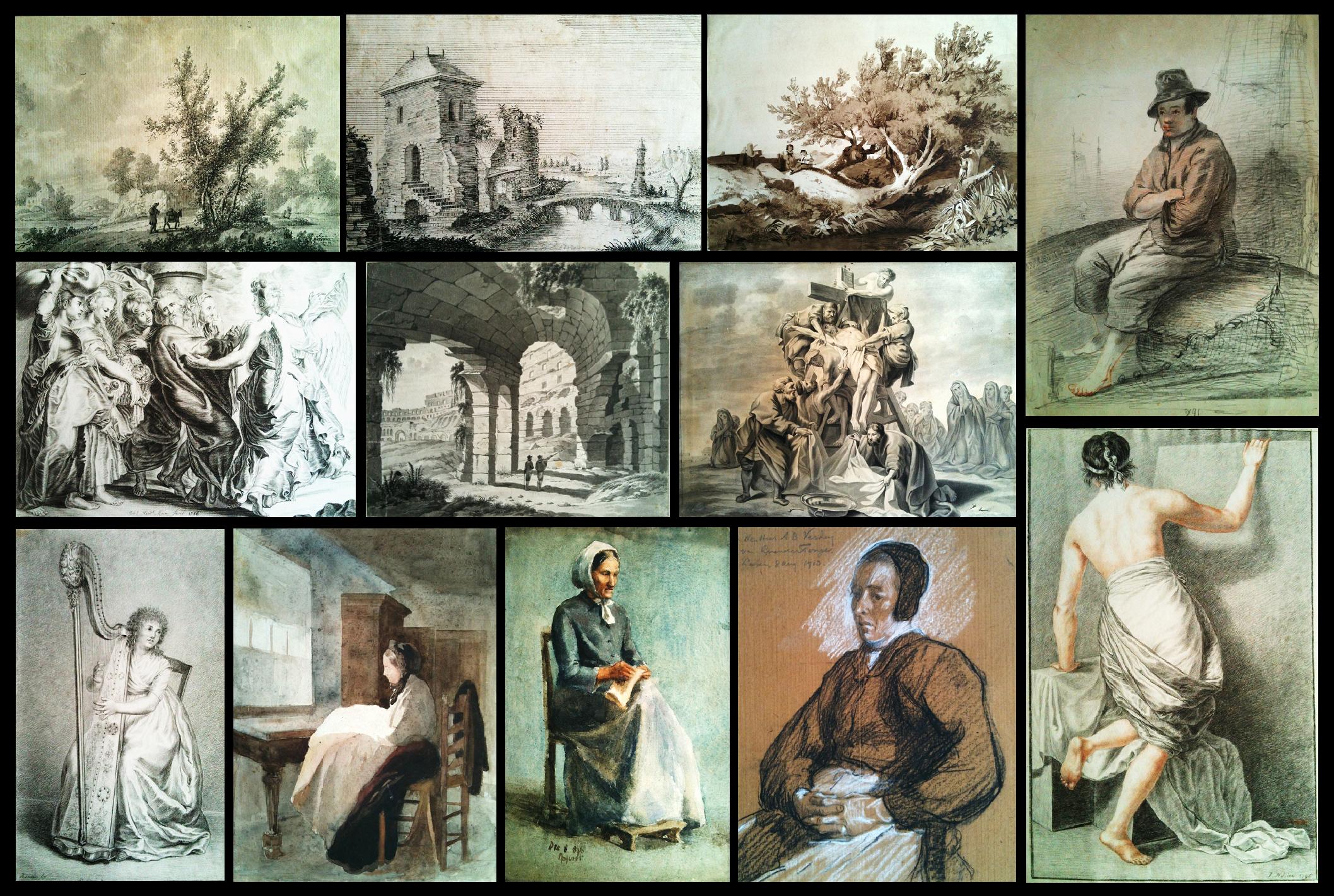 De verzameling Tekeningen en Aquarellen bevat vele stukken van divers formaat, van oud tot hedendaags, zowel anoniem als van bekende en minder bekende kunstenaars. De werken zijn afkomstig uit vooral westerse landen, (inclusief oost Europa) behalve enkele albums en losse exemplaren uit China,India, Mongolië en Japan. De thematiek loopt uiteen van landschappen en genretaferelen tot mens en dier. Een groot aantal tekeningen en aquarellen is van de hand van Nederlandse kunstenaars.