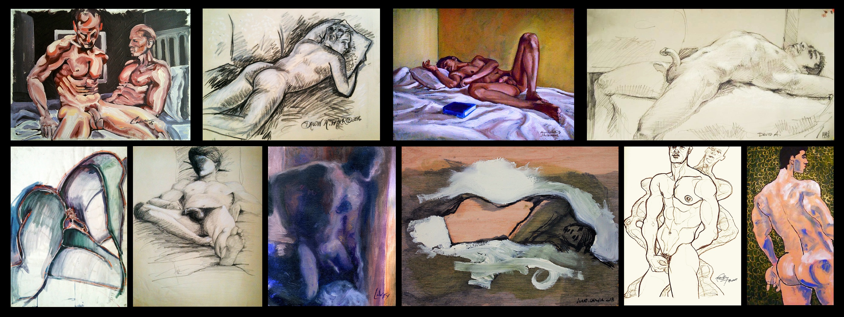 Galerieën: Karolina Zalewska (KZ); Michel Suret-Canale (SC1; SC2; SC3); Tracey Padron (TP1; TP2); Melissa Grimes (MG); Saul Lishinsky (SL1; SL2); Diverse Russische kunstenaars (DRK1; DRK2) Diverse Amerikaanse Kunstenaars (DAK1; DAK2; DAK3) Diverse Cubaanse Kunstenaars (DCK); Diverse Britse Kunstenaars (DBK); Diverse Oosteuropese Kunstenaars (DOK); Jan Kooman (JK); Felix d'Eon (FED); Nederlands-Indonesische kunstenaars (IND); Antiek (1700-1900) (ANT1; ANT2); Selectie 20e eeuwse kunstenaars (S20K); Mat Kissing (MK1; MK2); G. Cavalieri (GC); Harry Carmean (HC); Monique Bavaud (MB); Billy Thrash (BT); Sam Thorp (ST); Carl Faarup Christensen (CFC); Kathryn Polk (KP); David White (DW); Homoerotische kunst (HK1; HK2; HK3);